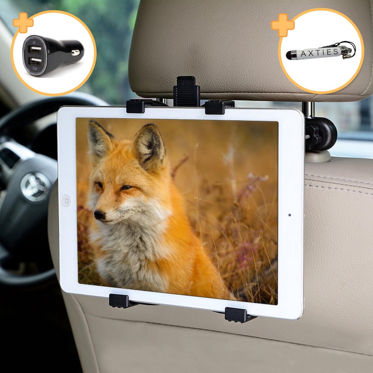 Met de Axties® Tablethouder Auto hoofdsteun kunnen kinderen vanaf de achterbank genieten van hun favoriete films of series tijdens lange reizen. De hoofdsteunhouder is eenvoudig te bevestigen aan de hoofdsteun van de voorstoelen, waardoor je iPad of tablet comfortabel en stevig in de juiste positie blijft. Deze iPad/Tablet houder is universeel en past op alle soorten iPads, tablets en e-readers. De Axties® Tablethouder Auto hoofdsteun is gemaakt van stevig, duurzaam materiaal, waardoor deze geschikt is voor lange reizen. De houder heeft een speciale klemconstructie, waardoor de iPad of tablet stevig in de juiste positie blijft. Bovendien kan deze eenvoudig worden ingesteld in elke gewenste hoek, zodat je kind de tablet op de meest comfortabele manier kan bekijken. Met de Axties® Tablethouder heb je altijd een stevige steun en hoef je je geen zorgen meer te maken over schokken of trillingen. Met de Axties® Tablethouder Auto hoofdsteun kunnen kinderen nu kijken naar hun favoriete films of series vanaf de achterbank, terwijl jij je kunt concentreren op het rijden. Deze iPad/Tablet houder is gemakkelijk te bevestigen, duurzaam en comfortabel en past op alle soorten iPads, tablets en e-readers. Laat je kinderen genieten van een stevige steun, zodat ze veilig kunnen genieten van hun favoriete films of series tijdens lange reizen. Met de Axties® Tableth.